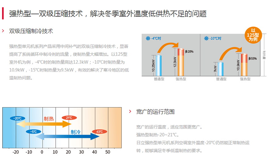 日立強熱型單元機系列商用分體空調,1+1的簡單構成卻擁有高效、低噪、可靠、多種室內機可選的多樣優勢,適用于商鋪、辦公室、酒店、餐廳等場所,為您創造更優異的精彩空間。